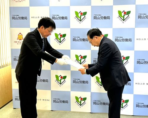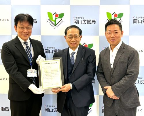 1月22日、岡山労働局にて認定通知書の交付式が行われ、理事長と社長等が出席しました。